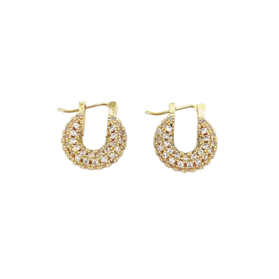 Delicate with just the right amount of sparkle, these tiny gold hoops are your new everyday essential. Featuring a row of dainty diamond-like stones, they’re subtle, sophisticated, and endlessly versatile. Made from waterproof, tarnish-free materials, they’re built to shine through workouts, showers, and summer heat — no maintenance, no worries. Wear them solo for a minimalist glow or stack them up for that effortlessly luxe look.