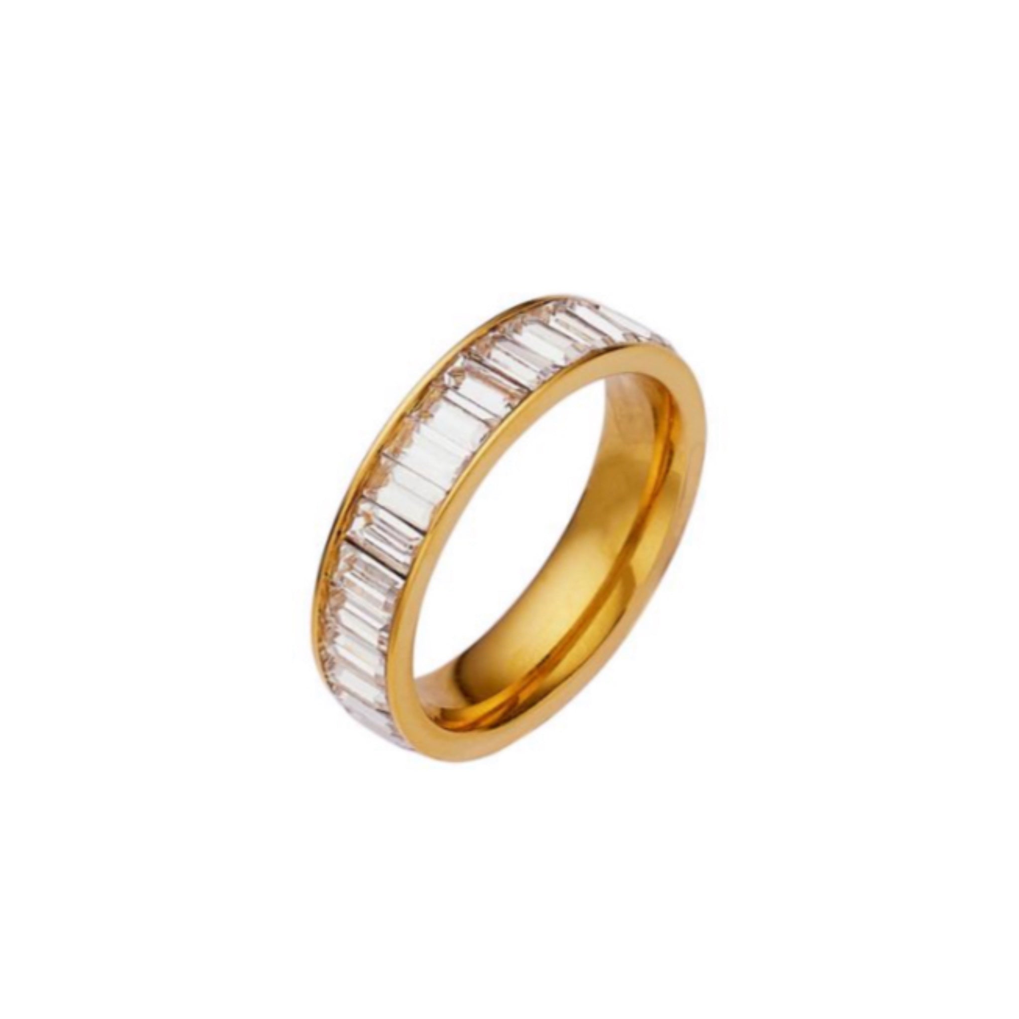 This ring is Tarnish free and made of Stainless Steel & Crystals