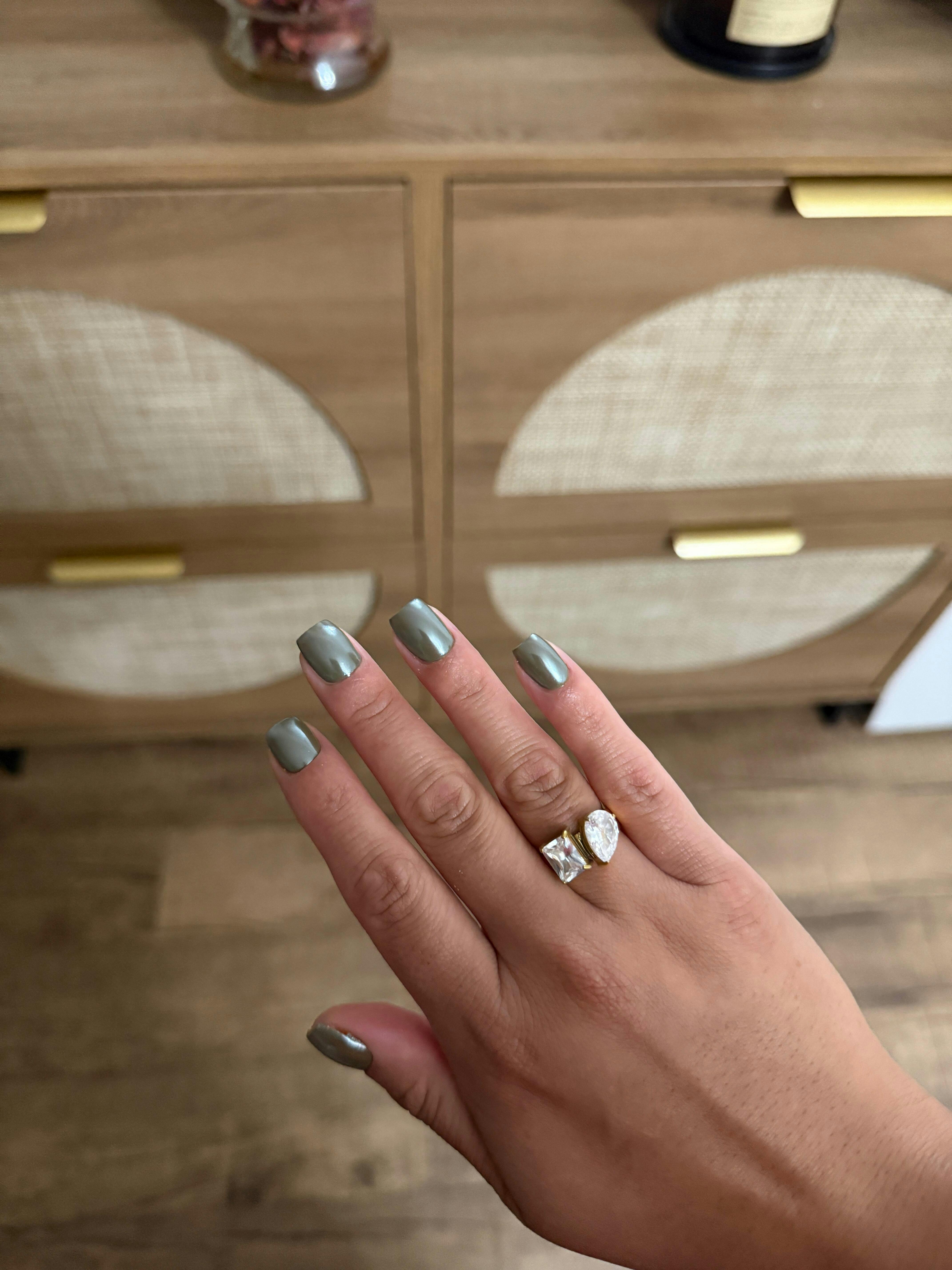 This statement ring features a thick stainless steel band set with two side-by-side diamonds—subtle sparkle meets striking structure. Waterproof and completely tarnish-free, it's made to withstand your day-to-day while adding a polished edge to every look. Wear it solo or stacked—either way, it speaks volumes.