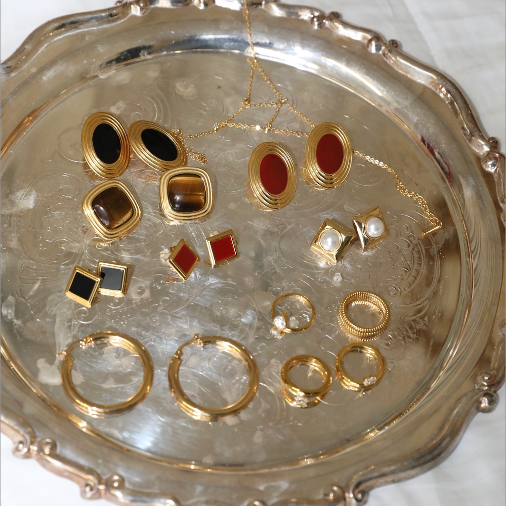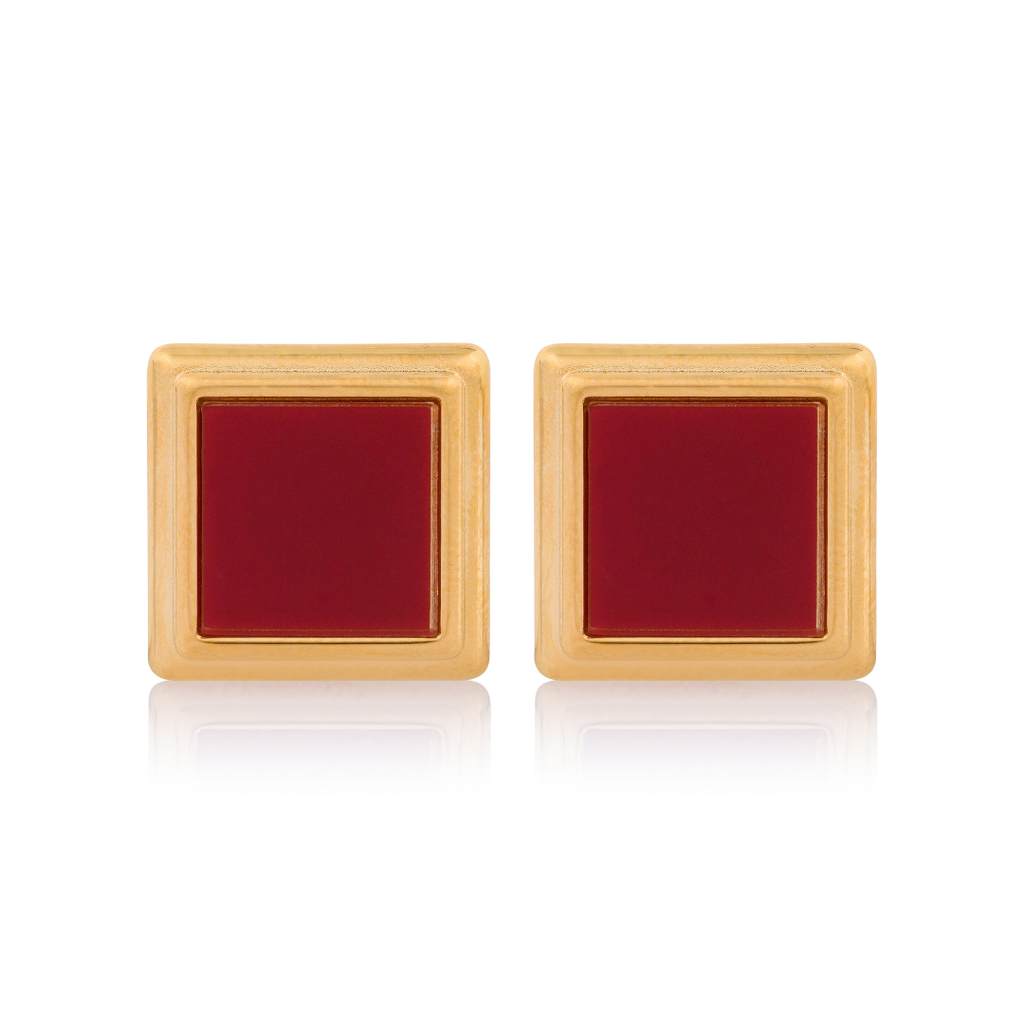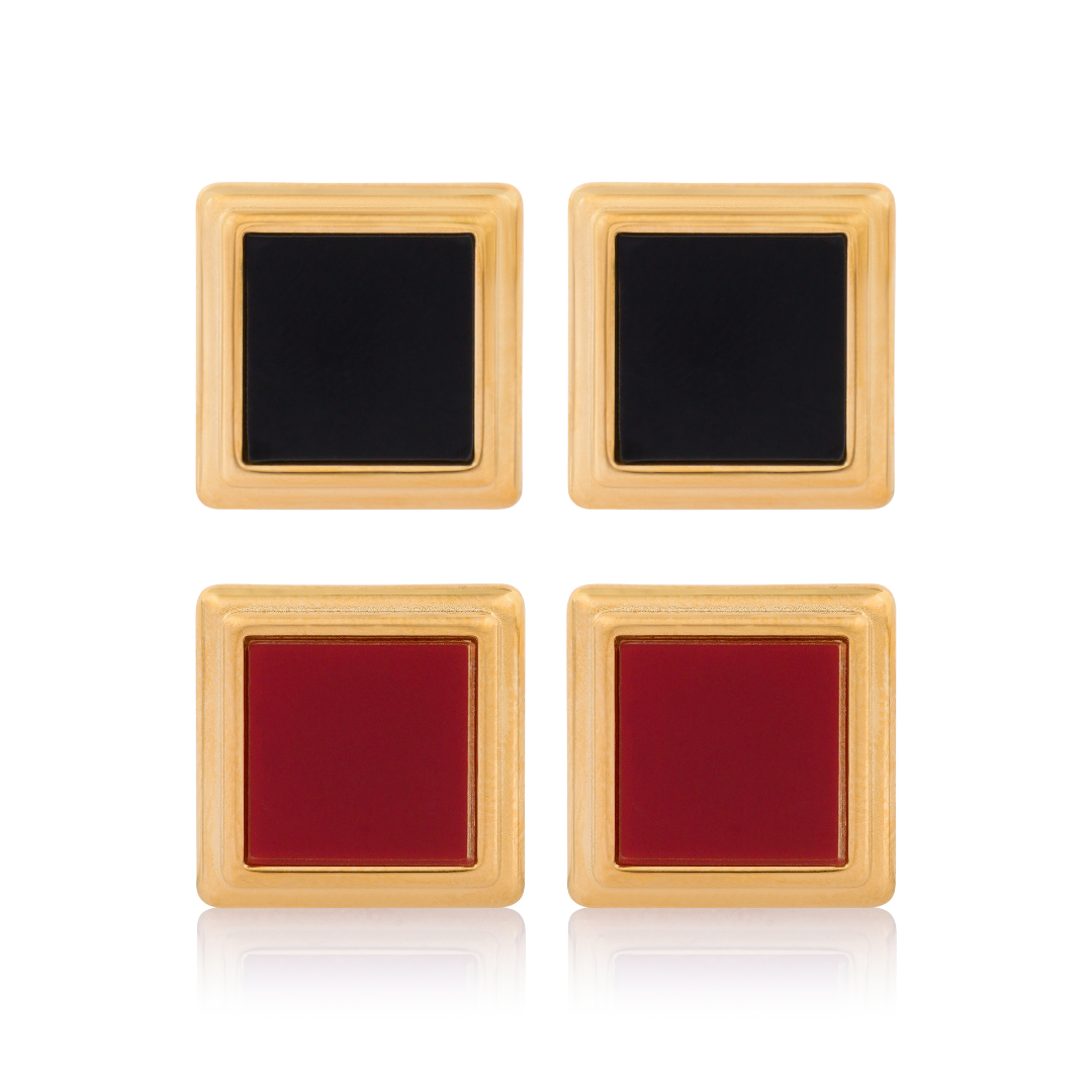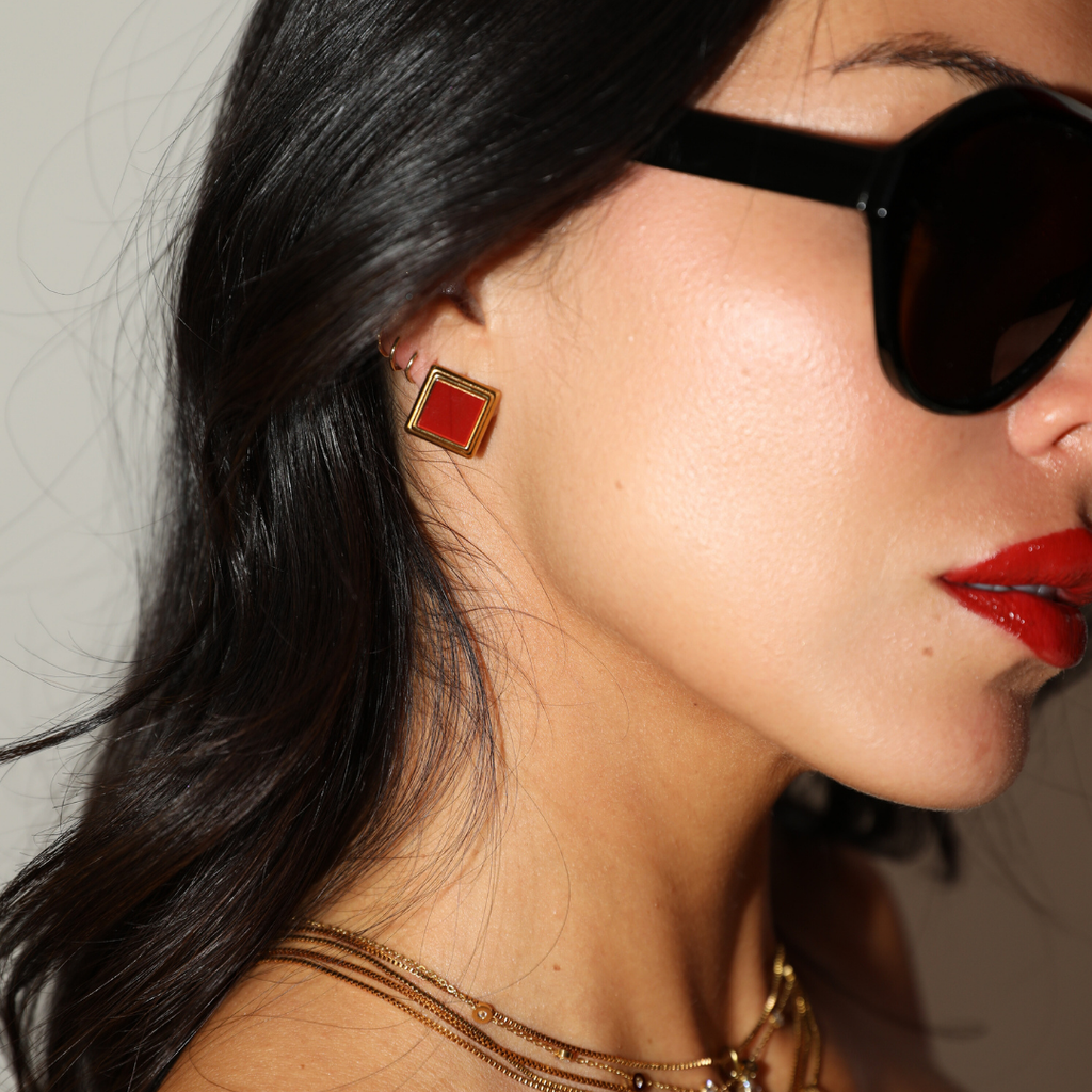 The Nala Earrings are ultra-lightweight square studs featuring a smooth enamel center framed in gold. They are tarnish-free, waterproof, and hypoallergenic, and backed by our lifetime guarantee, including replacement if they ever tarnish or lose integrity. Available in black or red.